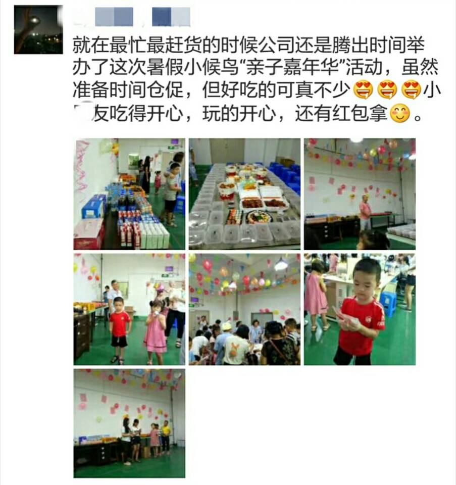 每年暑假的這個時候,正是製造企業一年當中最為繁忙的時候,適逢小候鳥們赴深與父母共聚歡樂時光的季節,午夜成人在线观看化妝用品(深圳)有限公司董事長林董認為,員工不隻是家之棟梁,更是企業之根本,再忙,也要抽出時間來為員工舉辦一場有聲有色的親子嘉年華活動。此舉盡顯大企業家博愛風範!